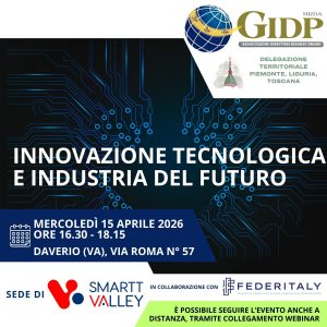INNOVAZIONE TECNOLOGICA E INDUSTRIA DEL FUTURO Mercoledì 15 aprile 2026, Ore 16.30 - 18.15 SMARTT VAlley Via Roma n°57, ...