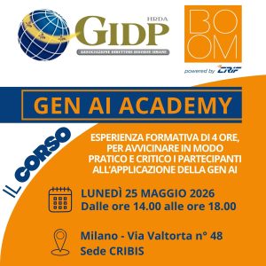GEN AI ACADEMY corso in presenza Lunedì 25 Maggio 2026, Ore 14.00 - 18.00 Milano, sede CRIBIS - Via ...